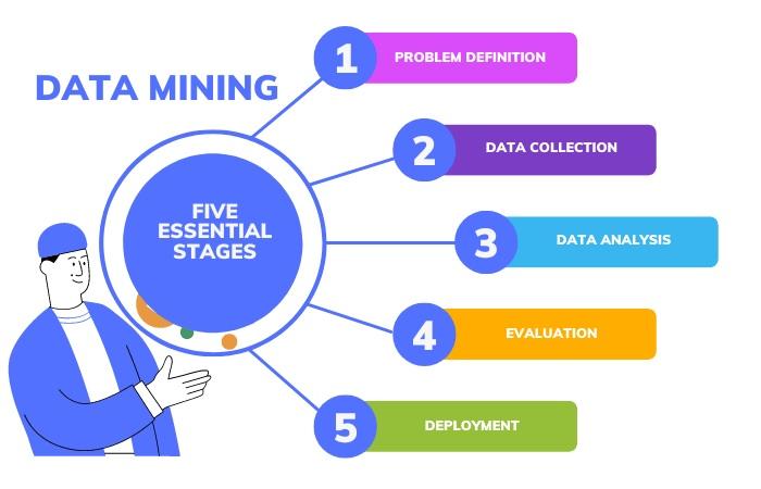 - جمعآوری دادهها: در این مرحله، باید دادههای مورد نیاز برای دادهکاوی جمعآوری شوند. این دادهها ممکن است از منابع مختلفی مانند پایگاههای داده، فایلهای متنی، گزارشها، حسگرها و غیره بهدست آیند.