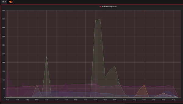 براساس اطلاعات سامانهی ارزیابی حملات ابر آروان، تصویر ۱ ناهنجاری ناشی از سرریز شدن حملات به وبسایت ارزجو را در ساعات اولیهی حمله نشان میدهد.