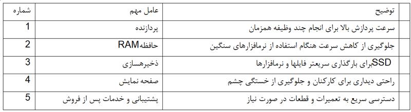 جدول راهنمای انتخاب کامپیوتر اداری
