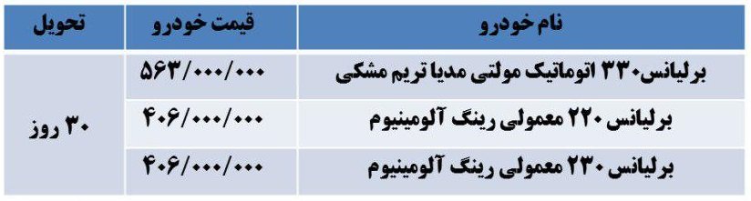 شرایط فروش فوری محصولات برلیانس شرکت پارس خودرو در آبان ماه 96 منتشر شد.