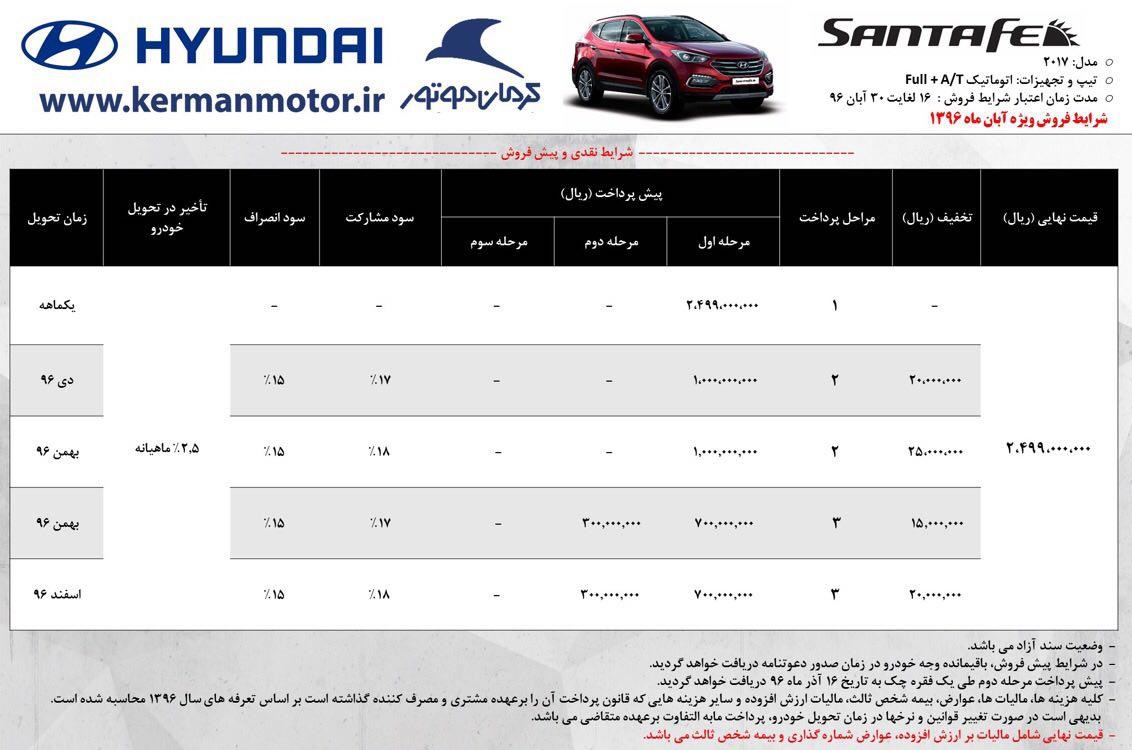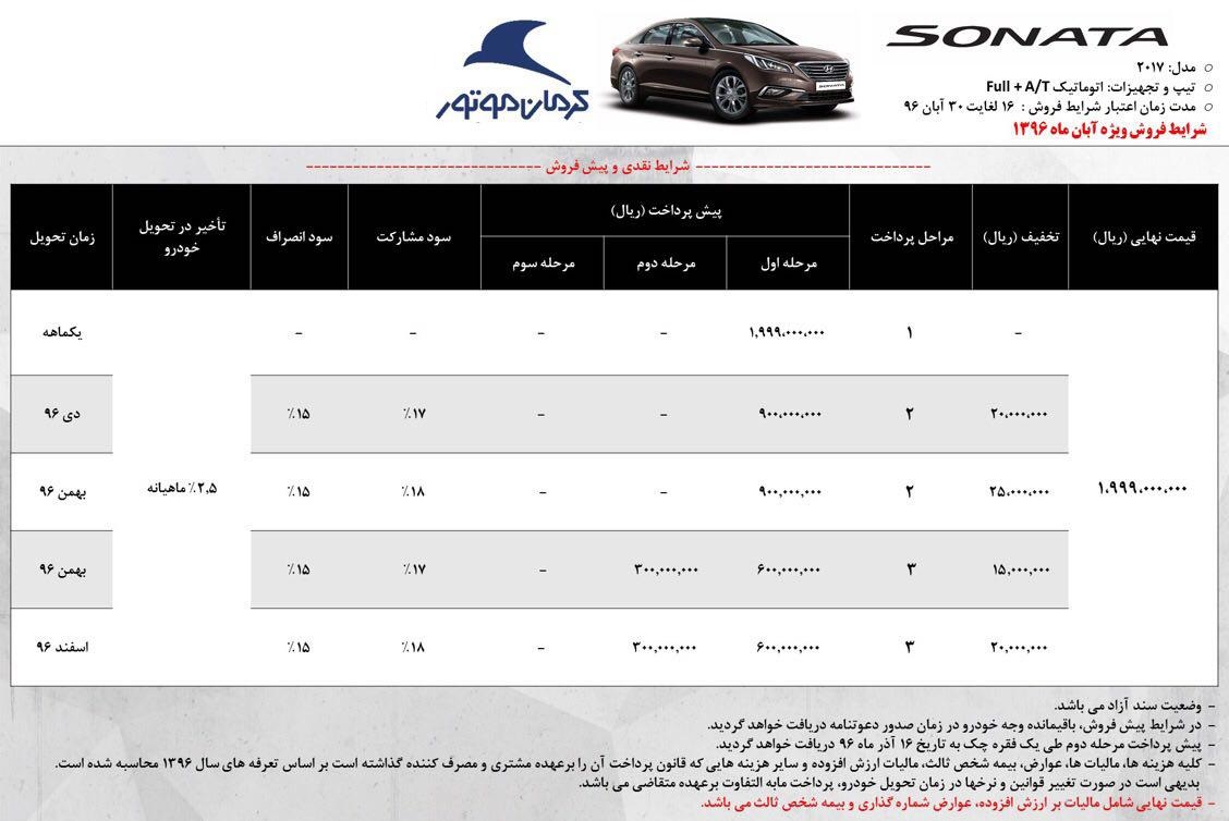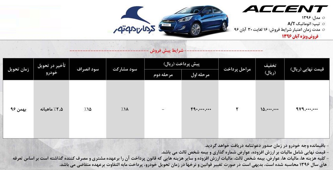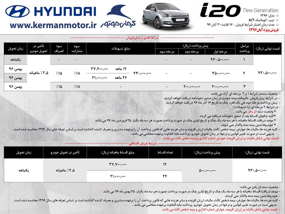 شرایط جدید فروش محصولات هیوندای شرکت کرمان موتور ویژه نیمه دوم آبان ماه 96 منتشر شد.