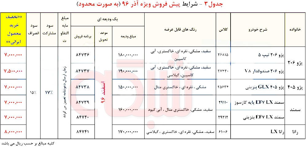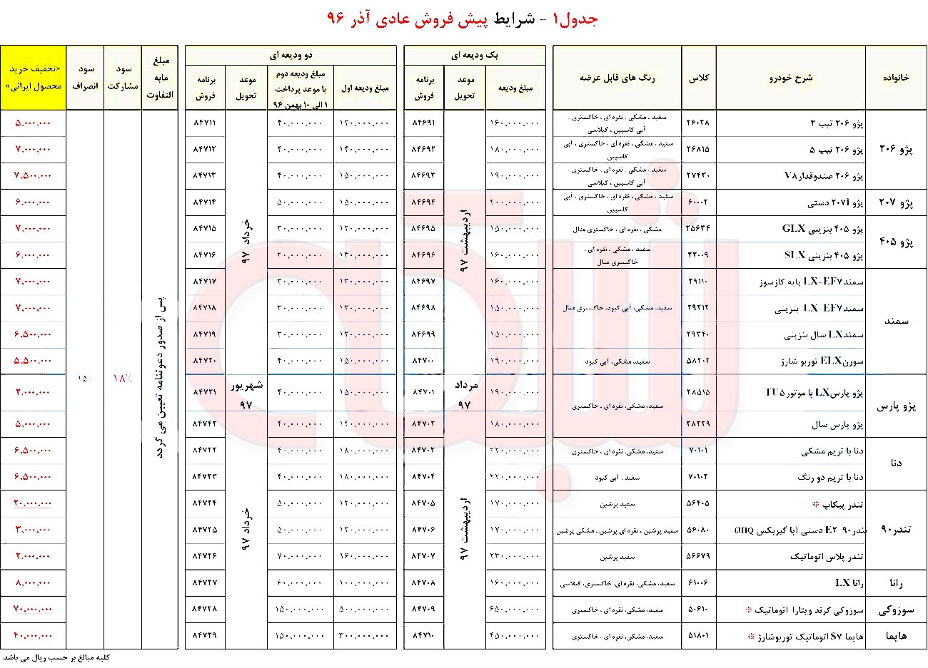 * خودروهای سوزوکی گرند ویتارا اتوماتیک ، هایما S7 اتوماتیک توربوشارژ و تندر پیکاپ به ترتیب داراي تخفیف ویژه 70 ، 40 و 20 میلیون ریالی می باشد .
