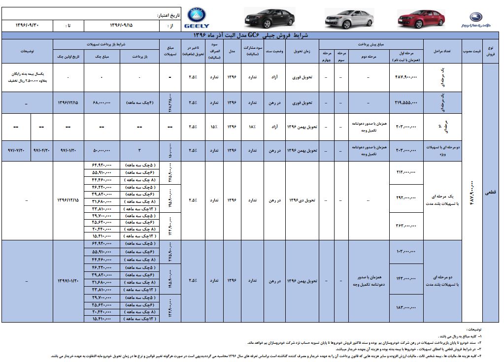 شرایط فروش جیلی GC6 مدل الیت ویژه آذر ماه 1396 اعلام شد