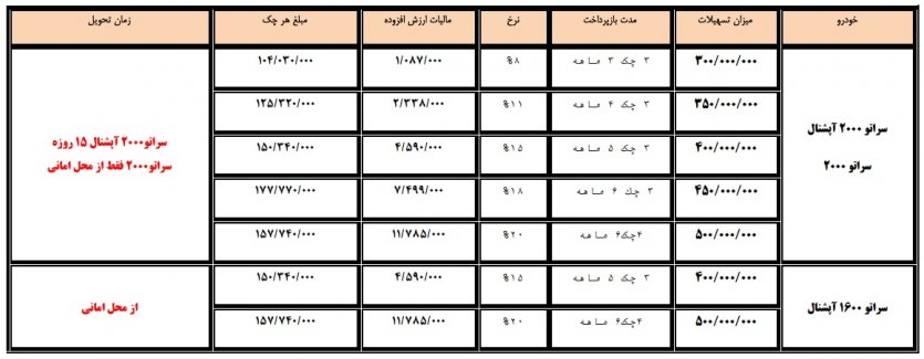 گروه خودروسازی سایپا مدلهای محتلف خودروی سراتو را با شرایط ویژه اقساطی به فروش میرساند.