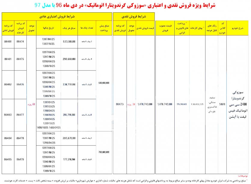 شرایط فروش نقد و اقساط سوزوکی ویتارا با مدل 97