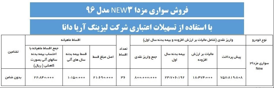 شرایط جدید فروش اقساطی مزدا3 تیپ 4 ویژه دی ماه اعلام شد.