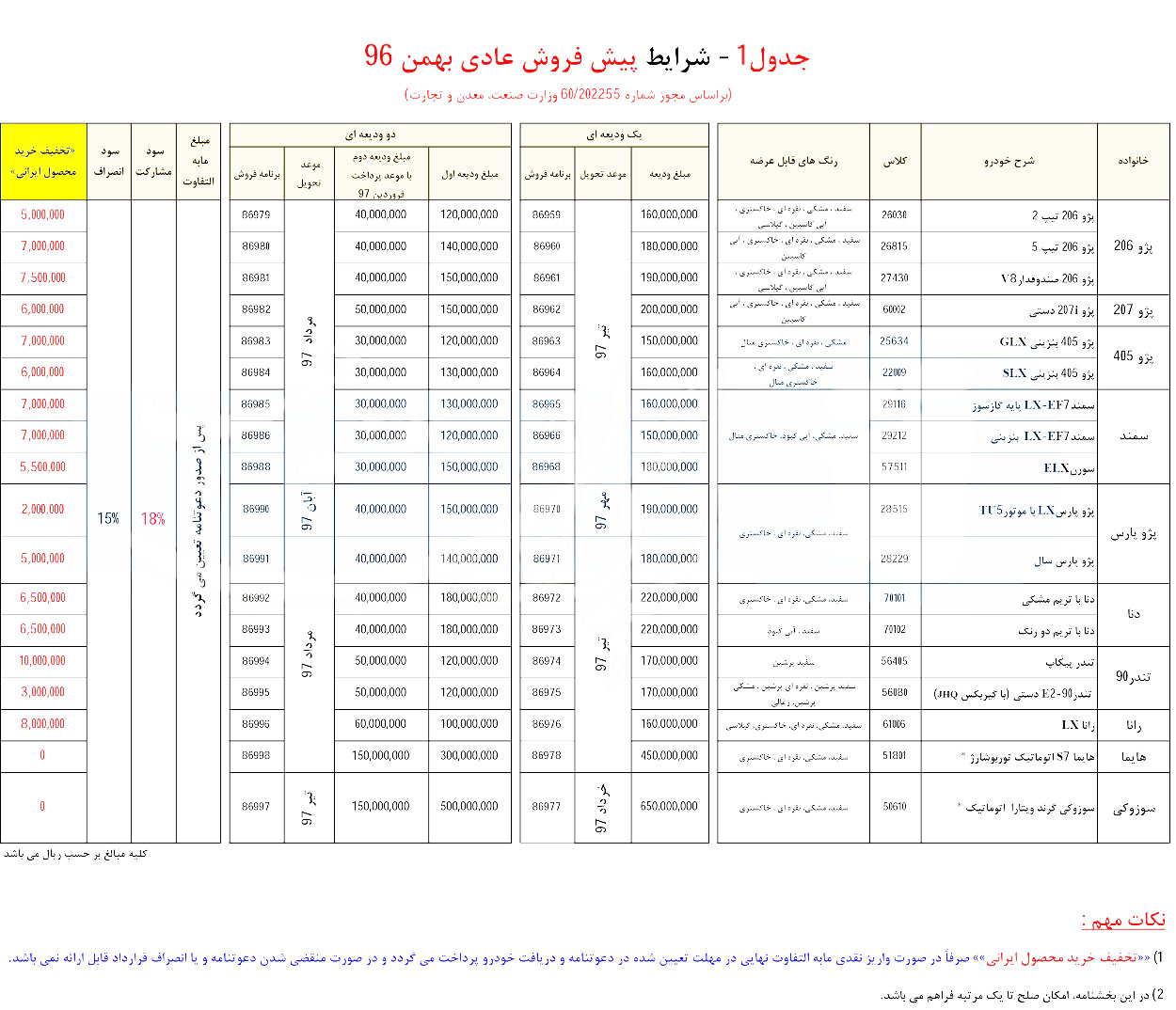 قواعد و نكات مهم پیش فروش محصولات ایران خودرو: