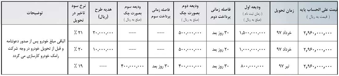 براساس بخشنامه اعلامی شرکت رامک خودرو، رکستون G4 از تاریخ 25 بهمن ماه 96 با قیمت پایه 296 میلیون تومان از سوی این شرکت با شرایط قید شده در جدول ذیل به متقاضیان عرضه شود. قیمت تمام شده این خودرو در فروش قطعی 322/640/000 تومان میباشد.