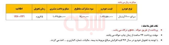 گروه خودرو سازی سایپا شرایط شرایط پيش فروش خودرو سراتو ٢٠٠٠ آپشنال با تعداد محدود را اعلام کرد.