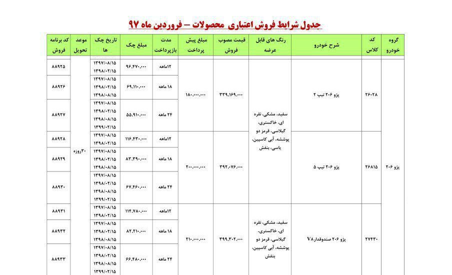 ایران خودرو شرایط فروش اقساطی پژو 206 را ویژه فروردین ماه 97 اعلام کرد.