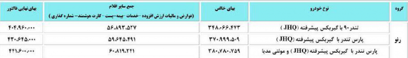 پارس خودرو لیست جدید قیمت خودروهای تندر 90 و پارس تندر را اعلام کرد.