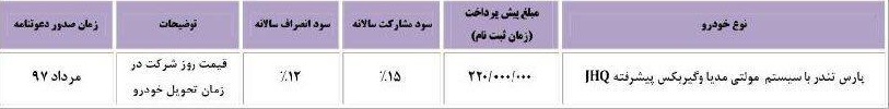 شرایط جدید پیش فروش اینترنتی پارس تندر از ساعت 10 صبح روز چهارشنبه مورخ 97/02/05 تا تکمیل ظرفیت به شرح ذیل اعلام می گردد: