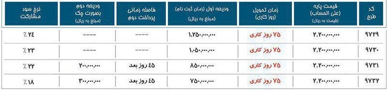 طرح فروش نقدی خودرو نیو کوراندو به شرح جدول ذیل می باشد.