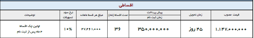 در شرایط اقساطی خودروها بدون بیمه بدنه واگذار نمی گردند و هزینه آن در اقساط محاسبه شده است. هزینه بیمه بدنه سه ساله، 21،4325،130