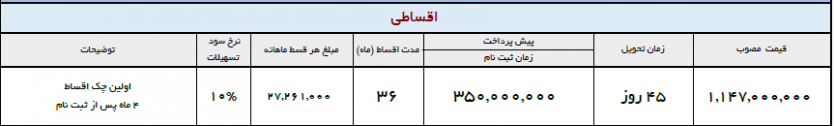 اقساط در فواصل 90 روز از یکدیگر دریافت خواهند شد.