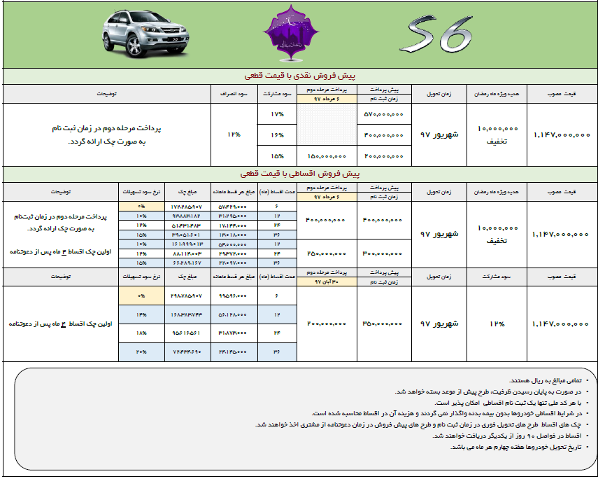 شرایط فروش نقدی و اقساطی BYD S6 ویژه ماه مبارک رمضان 1397 اعلام شد.