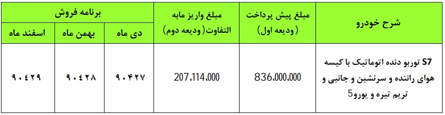 2- در این بخشنامه پرداخت بهای خودروی هایما S7 توربو در دو مرحله مطابق جدل پیوست انجام خواهد شد.