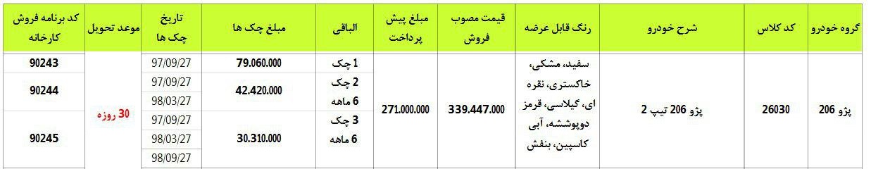 شرایط فروش اقساطی پژو 206 به مناسبت عید فطر - خرداد 97