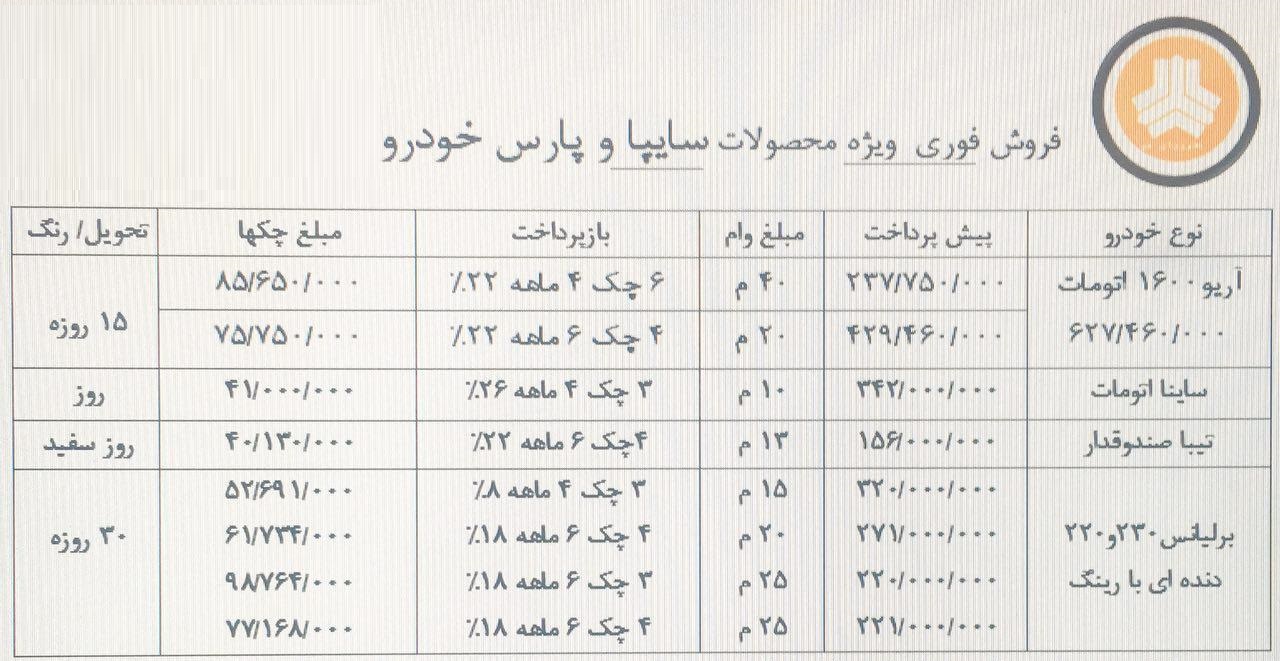 شرایط فروش فوری اقساطی ویژه محصولات سایپا و پارس خودرو اعلام شد.