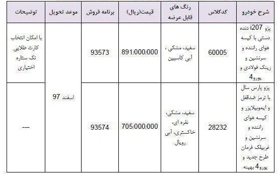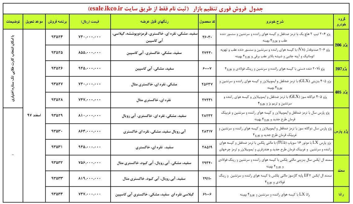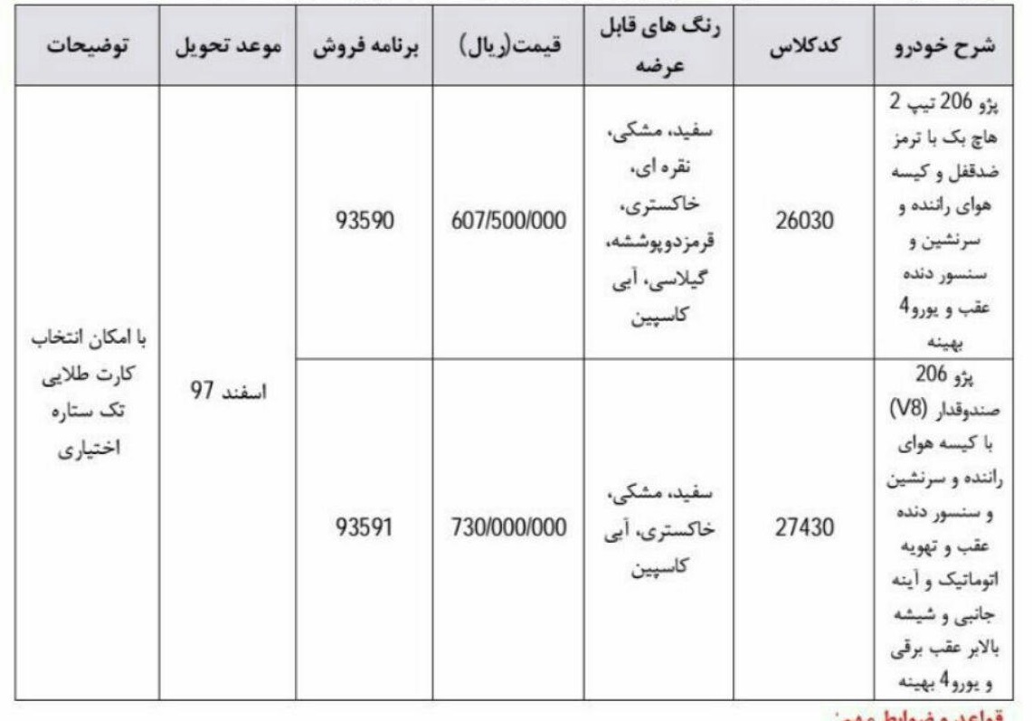 شرایط فروش نقدی فوری ایرانخودروجدول شماره 3 (206)