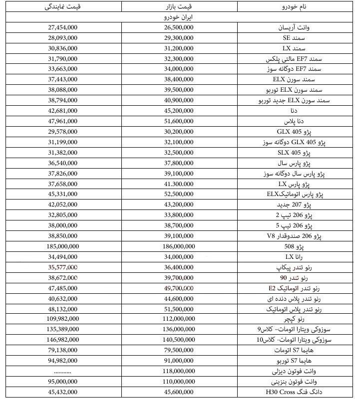 قیمت انواع محصولات ایرانخودرو در بازار و نمایندگی اعلام شد. در ادامه لیست قیمت مردادماه محصولات ایرانخودرو را ببینید.