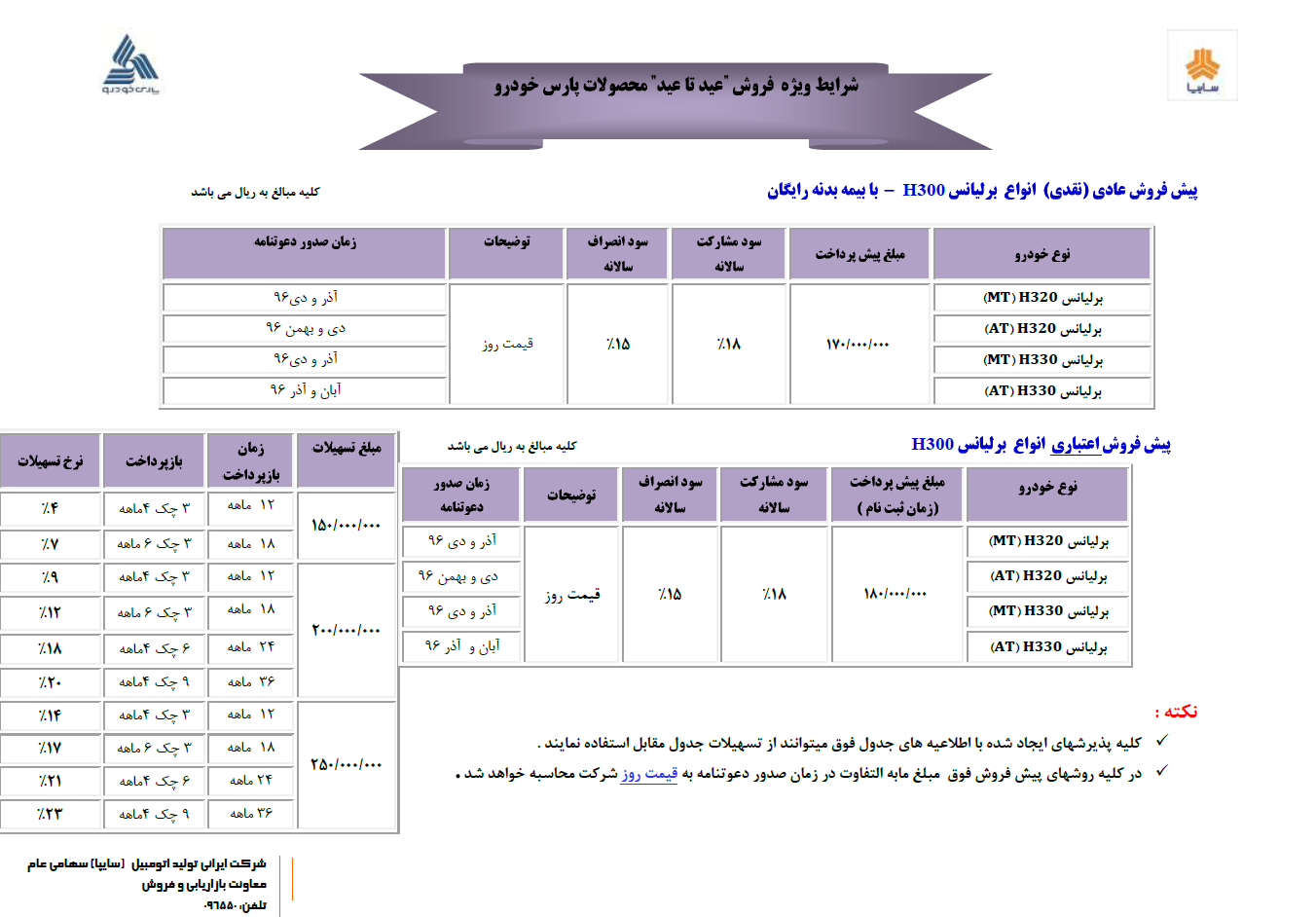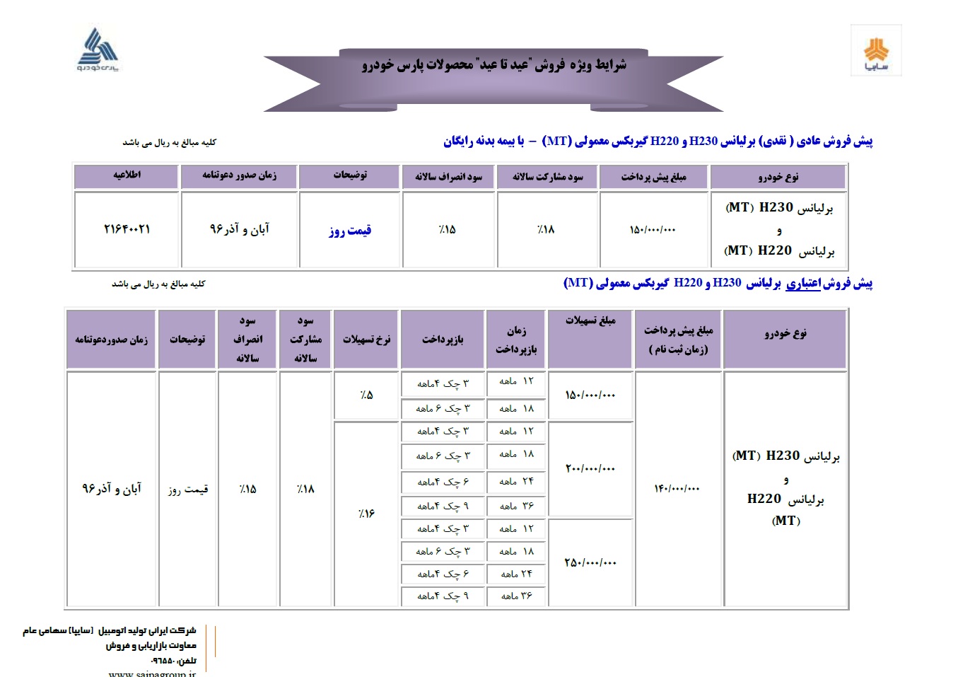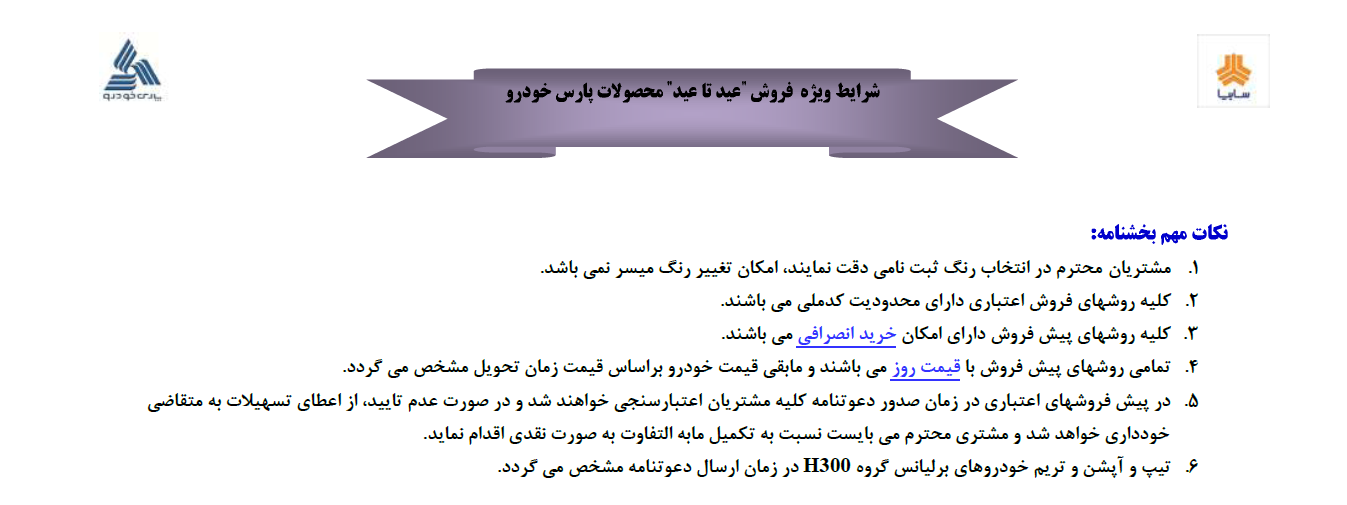 شرکت پارس خودرو از گروه خودروسازی سایپا طرح فروش ویژه عید تا عید خانواده برلیانس را آغاز خواهد کرد.