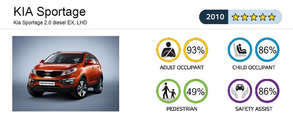 همهی این موارد سبب شده است تا در زمینه ی حفظ جان سرنشینان بالغ، کیا اسپرتیج بتواند به امتیاز 93 درصد دست پیدا کند و ۵ ستاره ی ایمنی کامل را به خود اختصاص دهد. تویوتا نیز با وجود دریافت ۵ ستاره از یورو NCAP اما امتیاز 89 درصد را دریافت کرده است.