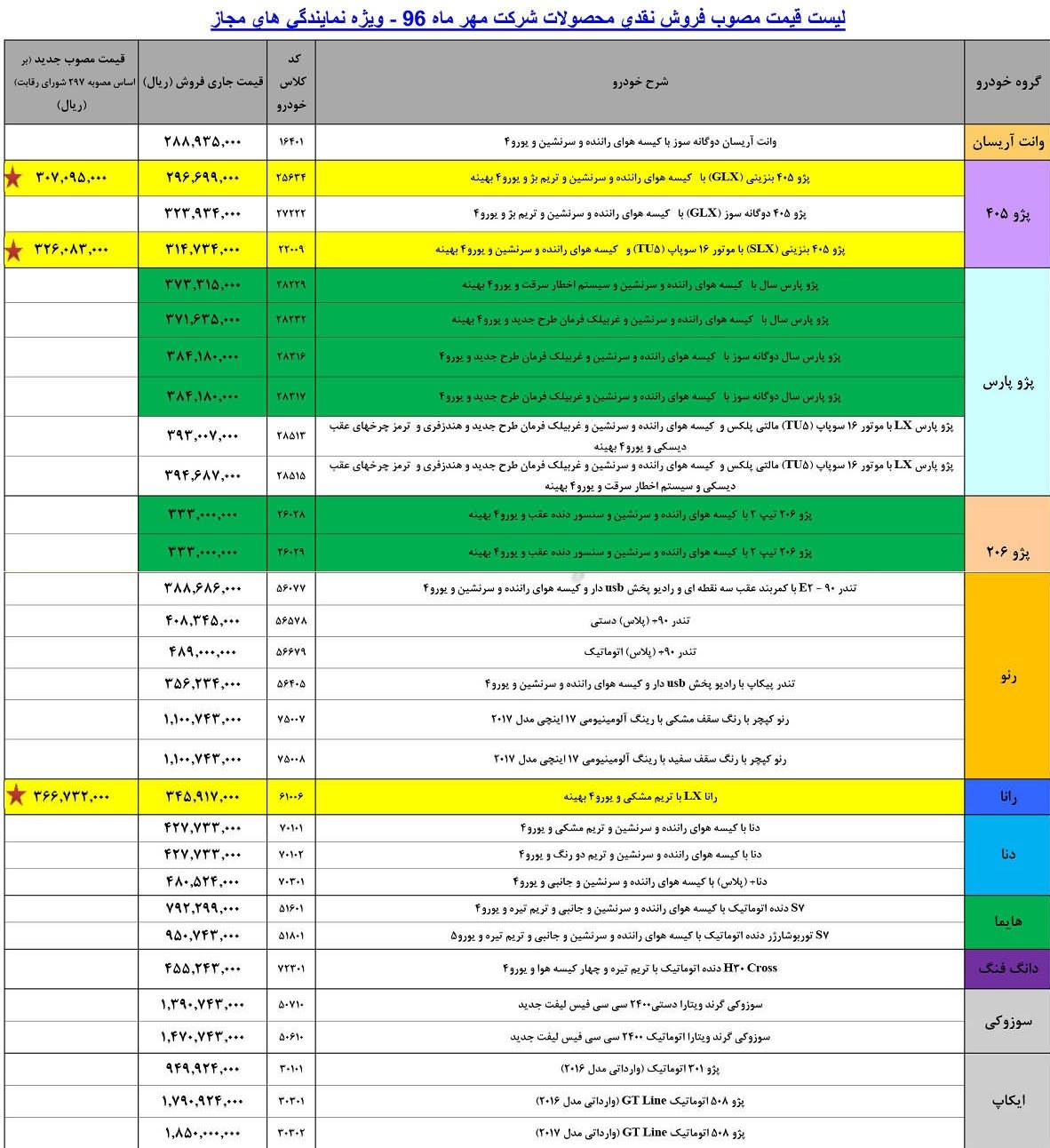 ایرانخودرو لیست قیمت مهرماه محصولات خود را ارائه کرد.