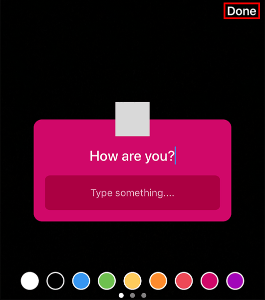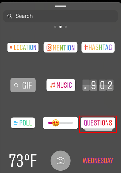 گام سوم (اختیاری)- از استیکر "Qeustions" میتوانید برای پرسیدن سئوال از فالوئرهای خود استفاده کنید یا از فالوئرهایی که دارید بخواهید تا سئوالاتی که از شما دارند را مطرح کنند. این استیکر بهصورت پیشفرض پیام "Ask me a question" را نمایش میدهد. روی این متن ضربه بزنید تا سئوالتان را تایپ کنید یا اینکه از بقیه بخواهید تا سئوالاتشان را مطرح کنند.