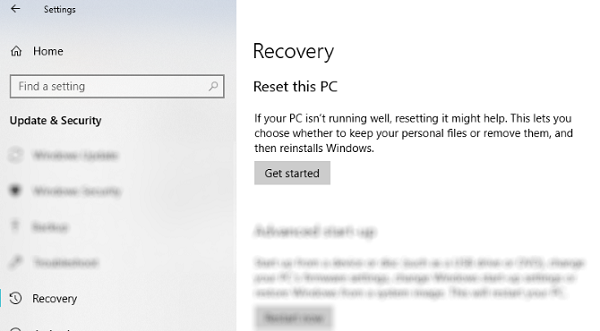 برای شروع Start > Settings > Update & Security را باز و در منوی سمت چپ Recovery را انتخاب کنید.