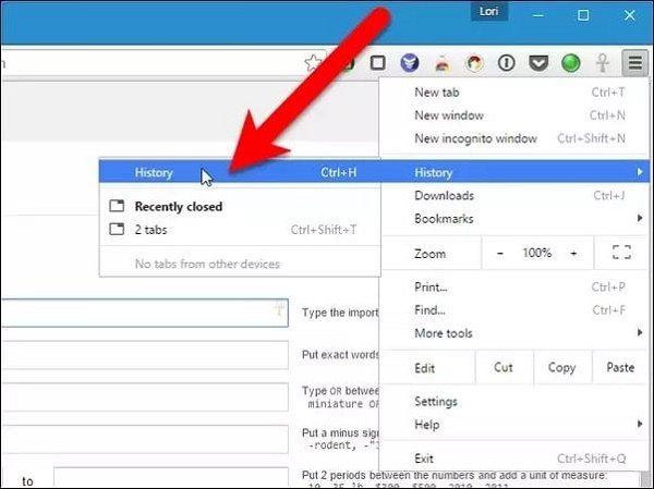 برای باز کردن دوباره زبانههای قبلی در گوگل کروم لازم نیست که تمام تاریخچه آنرا جستجو کنید. برای این کار دکمههای Ctrl + H را بگیرید تا History کروم باز شود. اگر بهطور اتفاقی زبانههای کروم را بستید یا اینکه بر اثر وجود یک باگ چنین اتفاقی رخ داد، تاریخچه کروم گزینهای را با عنوان ‘Reopen Closed Tabs’ در اختیارتان میگذارد تا بهسادگی آنها را دوباره باز کنید.