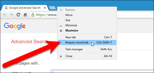 یک راه ساده دیگر کلیک راست بر روی یکی از زبانههای کروم و سپس انتخاب گزینه ‘Reopen Closed tab’ است.