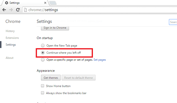 گوگل کروم گزینهای را به کاربران ارائه میکند که با استفاده از آن میتوان آخرین جلسه را بازیابی کرد. اما موضوع آن است که با این روش نمیتوان زبانههای بسته شده را دوباره احیاء کرد. اگر بعد از کرش کروم قادر به بازیابی زبانههای بسته شده نیستید باید مرورگر سیستم خود را بهروزرسانی کنید. اگر هماکنون آخرین نسخه روی سیستم است مجددا آنرا نصب کنید.