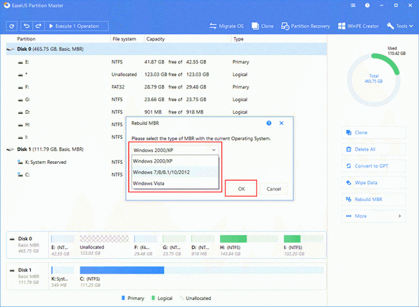مرحله 4. در مرحله بعد از شما خواسته میشود تا نوع MBR را مشخص کنید. سیستم عامل فعلی خود را انتخاب کنید و روی دکمه Ok کلیک کنید.