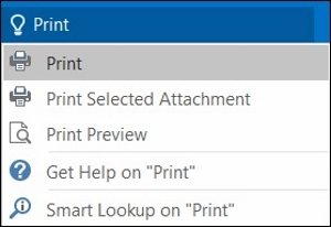 Tell me یک ویژگی کاربردی به شمار میرود، به طوری که فرامین در نوک انگشتان شما قرار دارد و باعث صرفهجویی در کارها میشود. میتوانید چیزی را که دنبال آن میگردید، در کادر Tell me وارد و نتیجه عبارت را مشاهده کنید. بهطور مثال، با تایپ Reading در این کادر فرمان، Reading Pane که به شما اجازه دسترسی به گزینههای پانل را میدهد، نشان داده میشود. اگر در این کادر کلمه Print را وارد کنید، گزینههای مربوط به چاپ را مشاهده خواهید کرد (شکل 5).