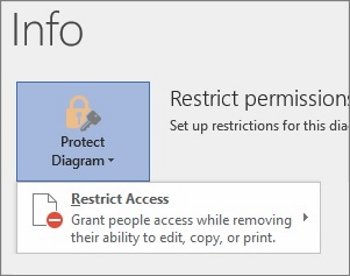 Visio Professional 2016 اکنون ویژگی IRM (سرنام Information Rights Management) را پیشنهاد میکند. با استفاده از این ویژگی توانایی محافظت از دادههای خود را در برابر نشتی اطلاعات خواهید داشت. برای این منظور به زبانه File بروید، گزینه Info را انتخاب کنید و در بخش Protect Diagram گزینه Restrict Access را برگزینید. اکنون میتوانید مشخص کنید چه کسی توانایی مشاهده و چه کسی توانایی تغییر فایل را خواهد داشت (شکل 8).