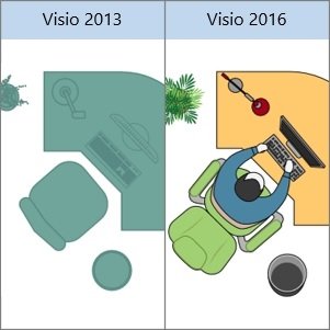 در مجموع، Visio جدید از شکلها و الگوهای بسیار غنیتری نسبت به Visio 2013 برخوردار است که بهراحتی توانایی رسم دیاگرامهایی با جزییات زیاد را دارد. طراحی جدید به گونهای است که کاربر برای شروع کار نیازی ندارد تا کار را با یک بوم خالی آغاز کند. بهجای آن میتوانید از دیاگرامهای آغازین استفاده کنید و بهسرعت متن و عناصر آن را تغییر دهید. بهطور مثال، اگر از نسخه 2016 استفاده کنید، میتوانید کار را با یکی از این دیاگرامها آغاز کنید.