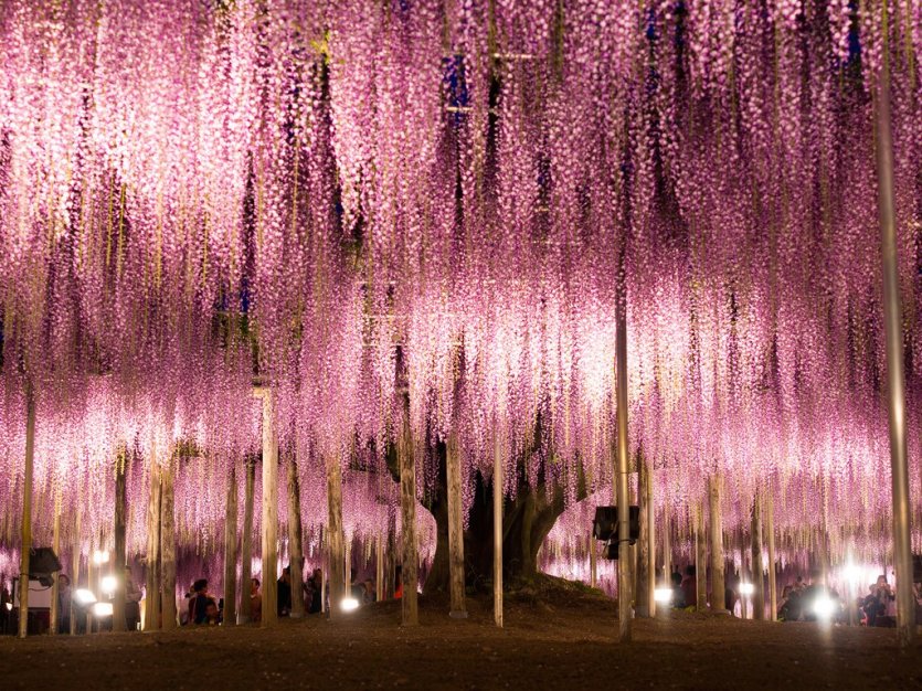 شکوفههای درختان ویستریا در اوایل بهار زیبایی خاصی به این پارک میدهد.