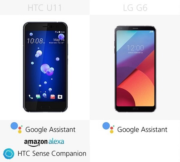 اگرچه هر دو گوشی اچتیسی یو 11 و الجی جی 6 از دستیار هوشمند گوگل یعنی گوگل اسیستنت (Google Assistant) پشتیبانی میکنند، اما یو 11 اچتیسی قابلیت پشتیبانی از الکسا آمازون (Amazon Alexa) و اچتیسی سنس (HTC Sense Companion) را هم دارد.