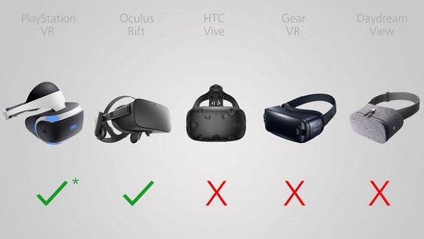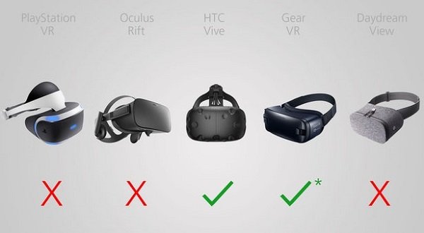 همانطور که در عکس فوق مشاهده میکنید به جز هدست واقعیت مجازی دیدریم ویوو سایر هدستهای دیگر از گیم پد پشتیبانی میکنند.
