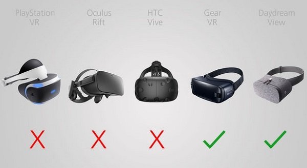 - هدست گیر وی آر: برخلاف سایر محصولات نام برده شده، هدست واقعیت مجازی گیر وی آر سامسونگ با سری گوشیهای گلکسی این شرکت سازگاری دارد.