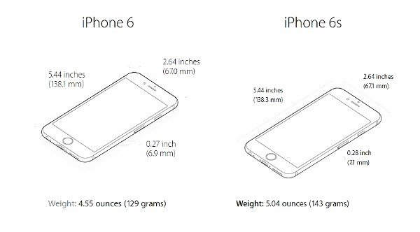 شکل 2: 129 گرم وزن آیفون 6 است، در حالیکه آیفون 6 اس با افزایش وزن 14 گرمی، 143 گرم شده است.
