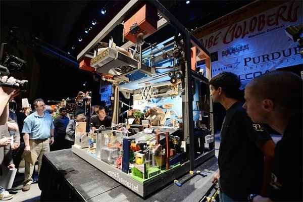 گروهی از طراحان موفق به طراحی یک سیستم عجیب بنام largest Rude Goldberg machine شدند که عنوان بزرگترین سیستم ماشینی جهان را به خود اختصاص داد. این سیستم به گونهای طراحی شده که تنها با فشار یک دکمه و صرف 15 دقیقه میتوان به یک درخت بزرگ کریسمس روشنایی بخشید.
