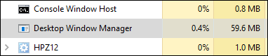 در حالت عادی، Desktop Window Manager از حداقل منابع استفاده میکند. معمولا و در شرایطی که تعداد زیادی برنامه روی سیستم در حال اجراست، مقدار CPU مصرفی کمتر از یک درصد و مقدار رم مصرفی حدود 60 مگابایت است. بهندرت پیش میآید که این منابع بیشتر از اینها استفاده شوند. حتی اگر ناگهان افزایش پیدا کند خیلی سریع بهحالت قبلی برمیگردد.