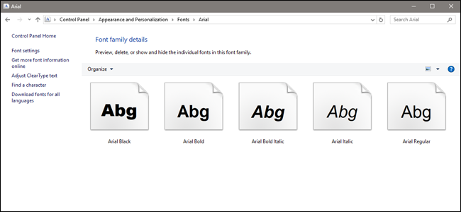 اغلب سیستم عامل‎های مدرن می‎توانند تفاوت یک فونت واحد و یک font family را مشخص کرده و آنها را بر همین اساس طبقه بندی کنند. در ویندوز 10، فولدر Font یک فولدر مخصوص در کنترل پنل است. تنها کافی است فایل‎های فونت مورد نظر خود را در آن کپی کنید تا نصب شوند و بتوانيد از آنها در برنامه‎های مختلف استفاده کنید. آیکون یک فایل فونت واحد به شکل یک فایل نمایش داده می‎شود، اما آیکون یک font family شامل دسته‎ای از فایل‎ها است.