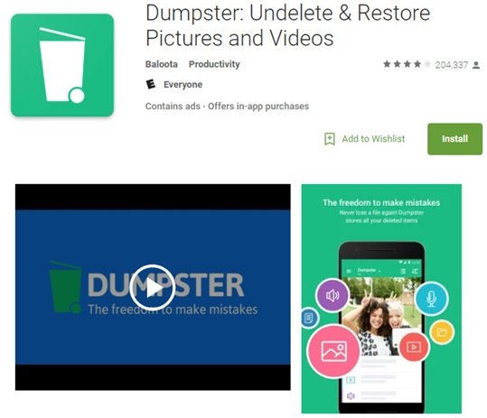Dumpster برنامهای است که قابلیت سطل زبانه را به گوشی اندرویدی شما اضافه میکند. زمانی که این برنامه را نصب کنید، بهطور خودکار همه دادههایی که به تازگی حذف کردهاید را ذخیره کرده و نسخه پشتیبانی از آنها تهیه میکند. بهطوری که بتوانید به سادهترین شکل به عکسها و ویدیوهای پاک شده دسترسی پیدا کرده و آنها را بازگردانید.