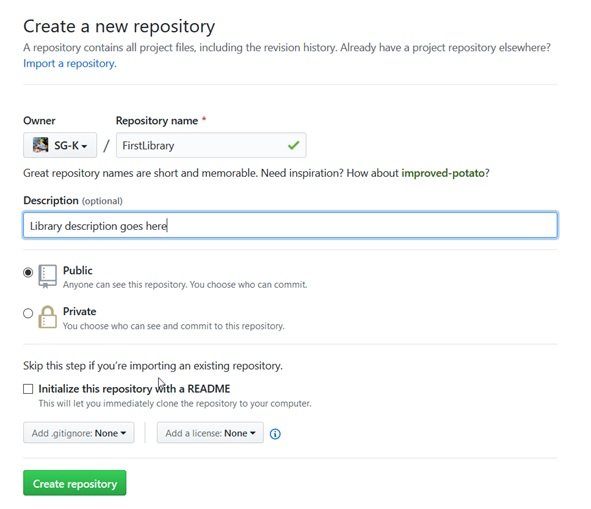 پس از آن‌که دستورات و سایر توابع را در کتابخانه پیاده‌سازی کردید، در مرحله بعد باید به سایت گیت‌ها بروید و برای کتابخانه خود یک مخزن ایجاد کنید. برای ساخت مخزن مراحل زیر را دنبال کنید.