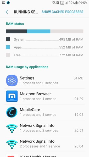 اگر از یک گوشی ساخت سامسونگ شبیه به S7 Edge استفاده میکنید، این شانس را دارید به بخش Settings > Developer options > Running services رفته و فهرستی از برنامههایی که از حافظه اصلی استفاده میکنند را پیدا کنید.