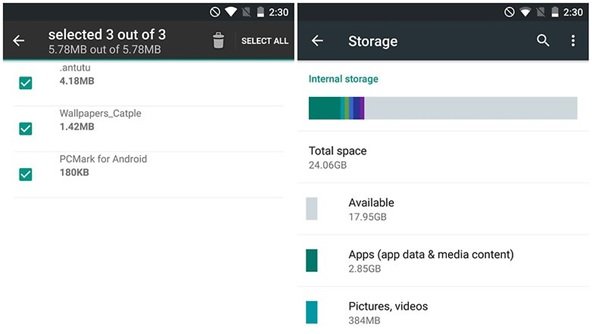 تمام عکسهایی که گرفتهاید و تمام برنامههایی که نصب کردهاید ممکن است روی عملکرد گوشی همراه شما تاثیرگذار باشند. نصب برنامههای بیش از اندازه روی گوشی مشابه آن است که در یک اتاق کوچک جعبههای زیادی قرار دهید و دیگر نتوانید در اتاق حرکت کنید. با مراجعه به به Settings>Storage مشاهده کنید که دادههای شما چه مقدار فضا روی گوشی اشغال کرده و در صورت امکان یکسری از دادهها را پاک کنید.