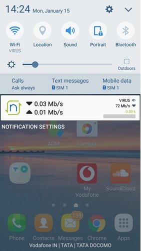 گام ششم، اکنون شما قادر هستید سرعت اینترنت را در نوار وضعیت مشاهده کنید. همچنین شاخص مربوط به اینترنت نیز در پانل مربوط به اعلانها نشان داده میشود.